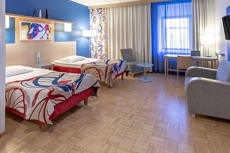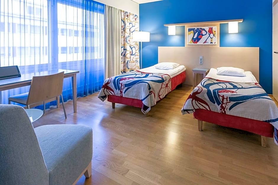 This twin room features a desk and city view.